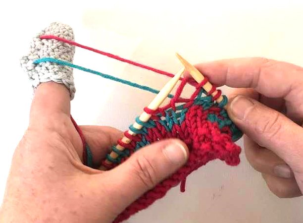 Doubleface stricken 3 farben. Die meisten Leute strecken ihn ja in die Luft und wickeln auch noch den Strickfaden 2-3 Mal um den Finger. Beim Doubleface stricken entsteht von dem gestrickten Muster ein Negativ auf der anderen Seite ganz einfach durch Farbwechsel. Doubleface stricken Farbwechsel - Tutorial 4.