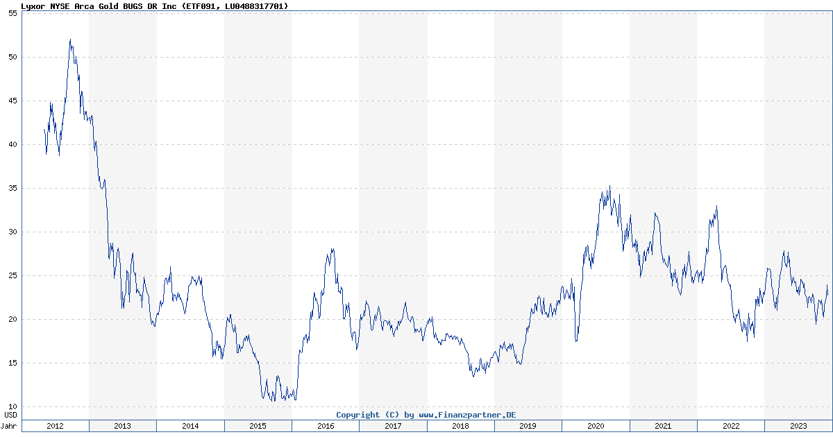 Der NYSE Arca Gold BUGS NTR Index HUINTR setzt sich aus Unternehmen aus dem Goldabbau zusammen. Aktueller Lyxor NYSE Arca Gold BUGS DR UCITS ETF Kurs WKN. The index provides exposure to short-term movements in the price of gold by including companies that do not hedge their gold production.