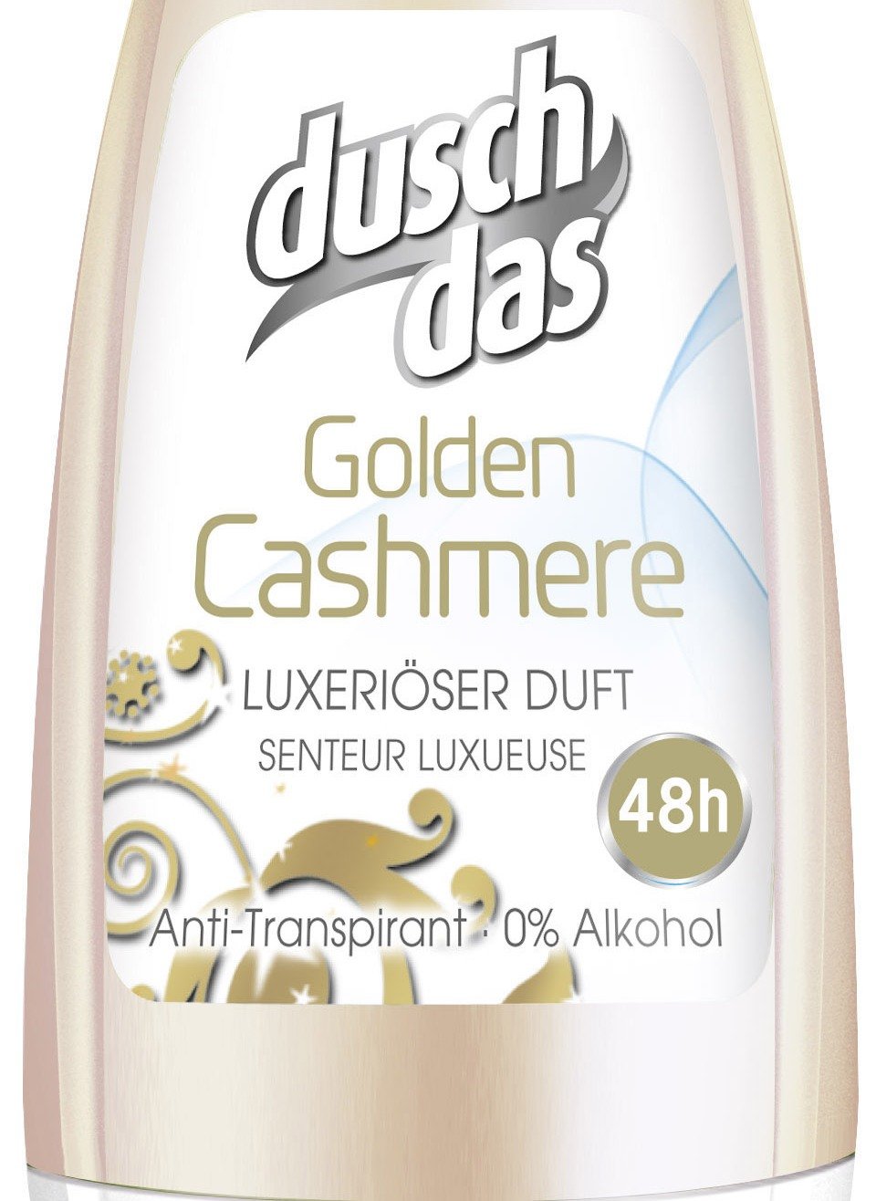 Duschdas Golden Cashmere Anti-Transpirant Deo Spray. Duschdas Golden Cashmere Deospray. Mit der 48h Aktiv-Wirkformel bietet es Ihnen zuverlässigen.