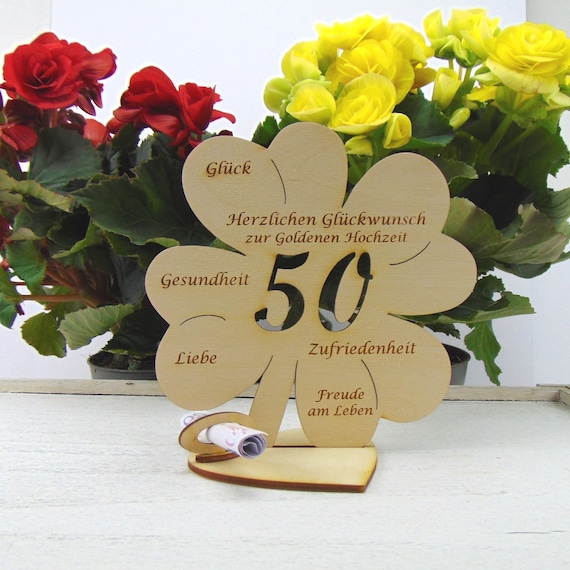 Kleeblatt Geldgeschenk Zur Goldenen Hochzeit Zahl 50 Holz 117 Etsy